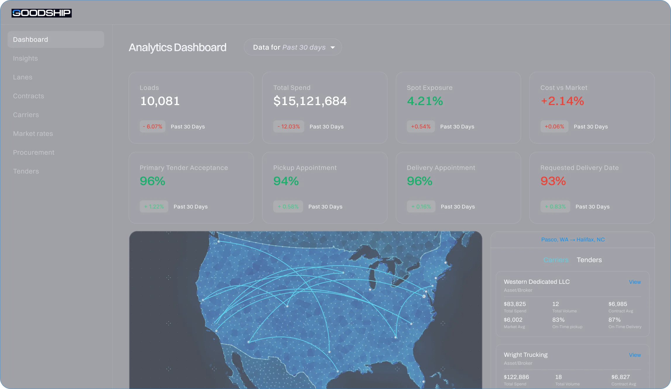 With GoodShip's dashboards and Laney AI Analyst, transportation teams can: