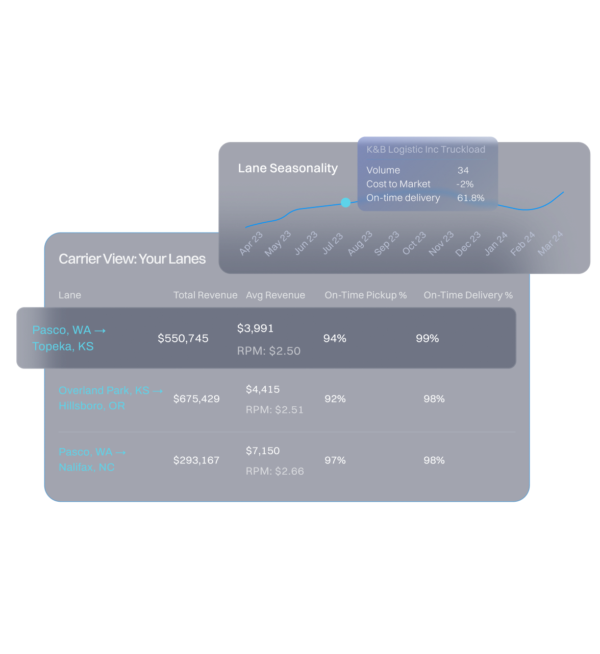Evaluate and grow your carrier network with full visibility into performance, rates, and lane activity.